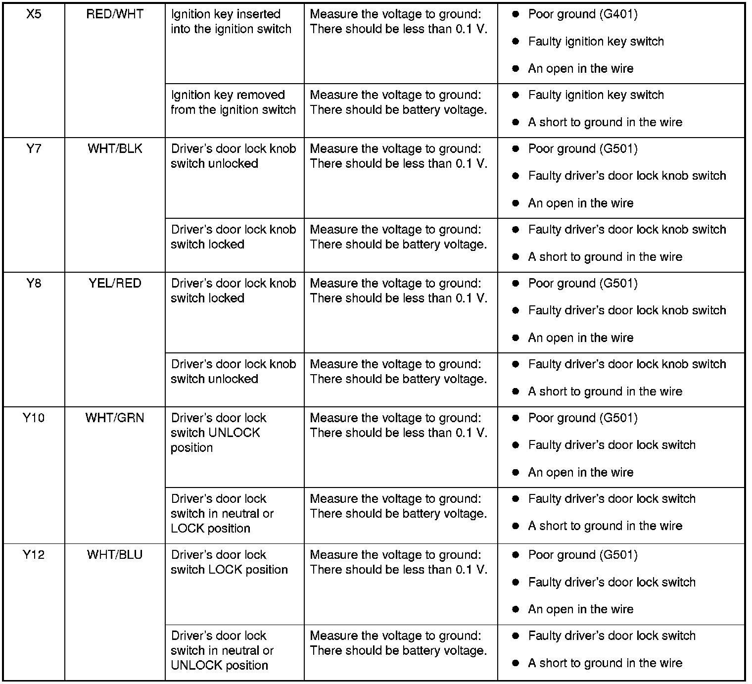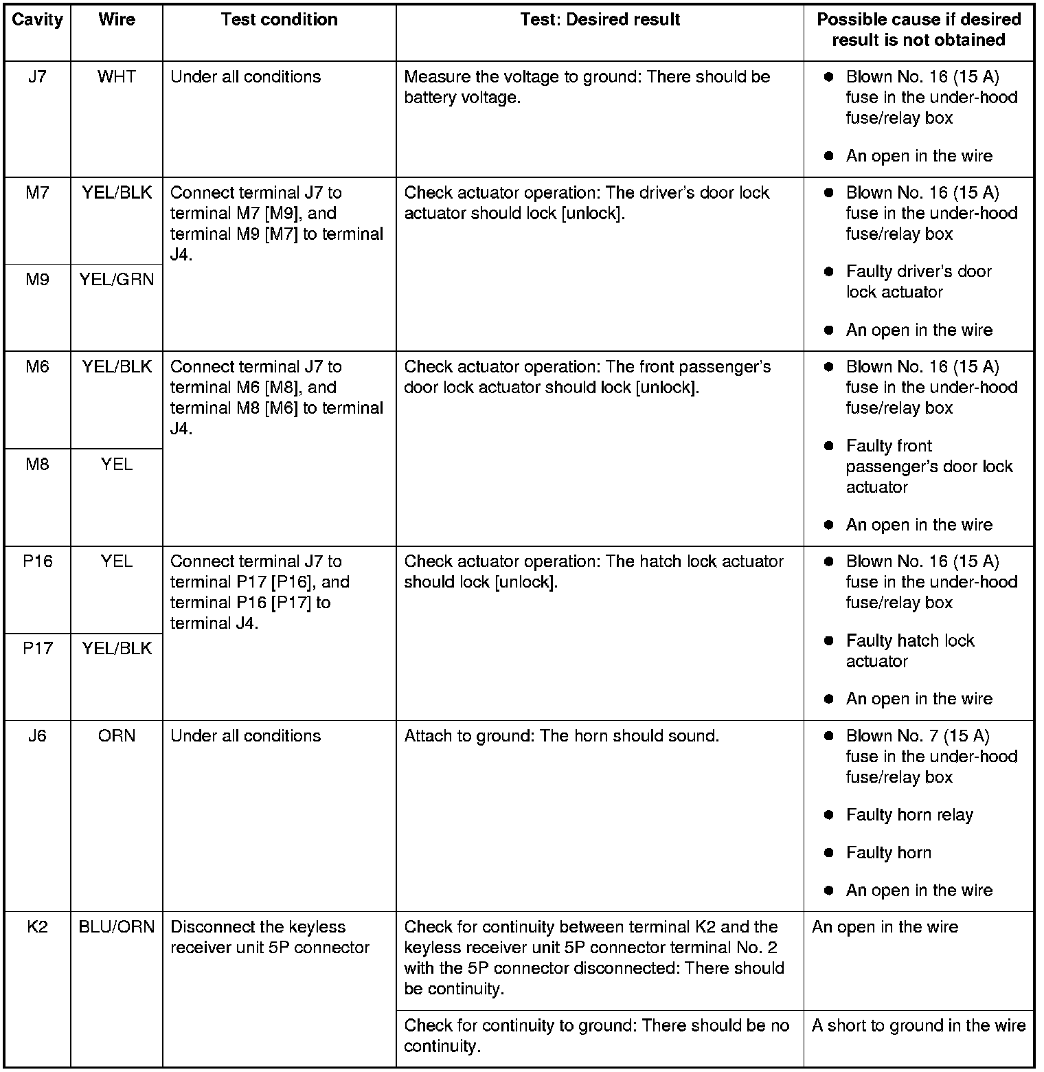 Keyless/Power Door Lock System Control Unit Input Test