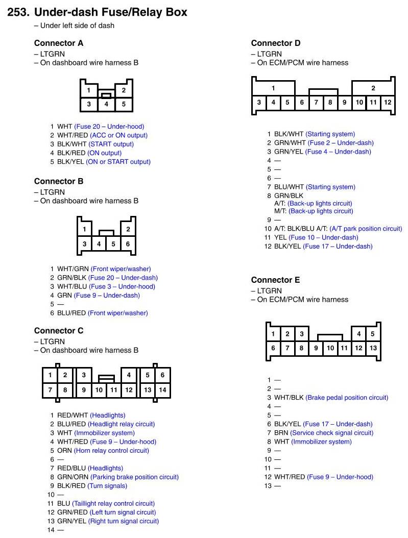 Under-dash Fuse/Relay Box Connector View