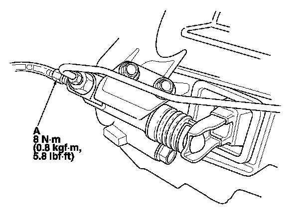 1. Make sure the brake fluid level in the clutch reservoir is at the MAX (upper) level line (A).
