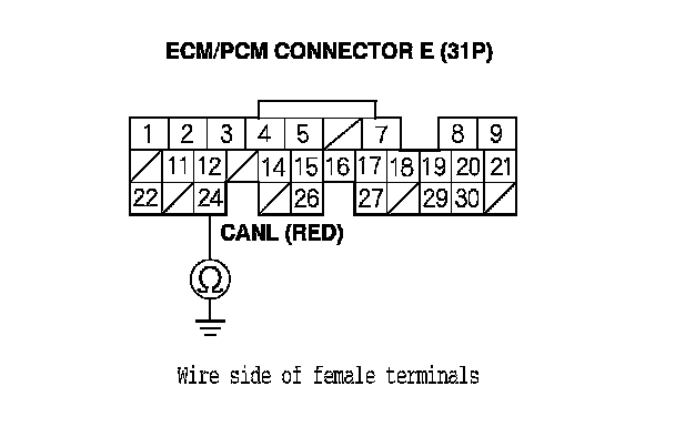 34. Check for continuity between ECM/PCM connector terminal E24 and body ground.
