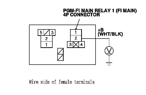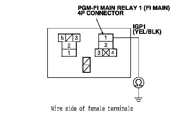 44. Check for continuity between PGM-FI main relay 1 (FI MAIN) 4P connector terminal No. 1 and body ground.