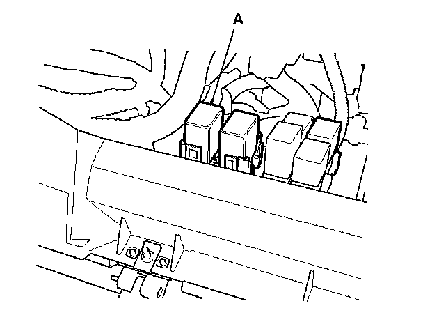 47. Remove the glove box, Service and Repair then remove PGM-FI main relay 2 (FUEL PUMP) (A).