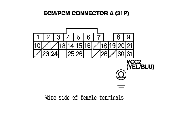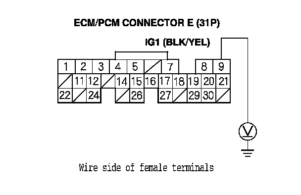31. Check for continuity between ECM/PCM connector terminal E11 and body ground.