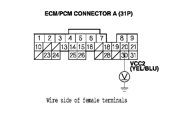 80. Measure the voltage between body ground and ECM/PCM connector terminal A20.