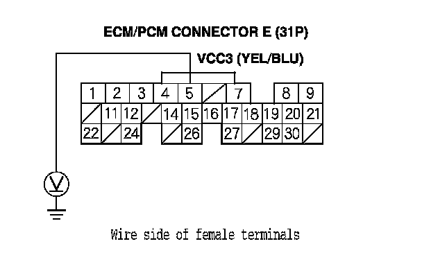 86. Measure the voltage between body ground and ECM/PCM connector terminal E5.