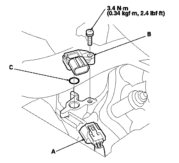 3. Install the parts in the reverse order of removal with a new O-ring (C) coated with clean engine oil.