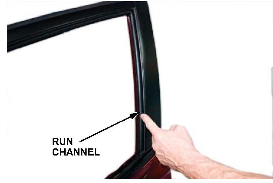 4. Inspect the run channel alignment, both inside and outside the door. Pay close attention just below the door skin; this is a common area for the run channel to be pinched.