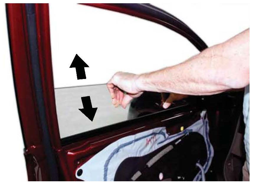 3. Reinstall the glass into the door without bolting it to the regulator, then manually slide it through its range of travel and check for excessive resistance: