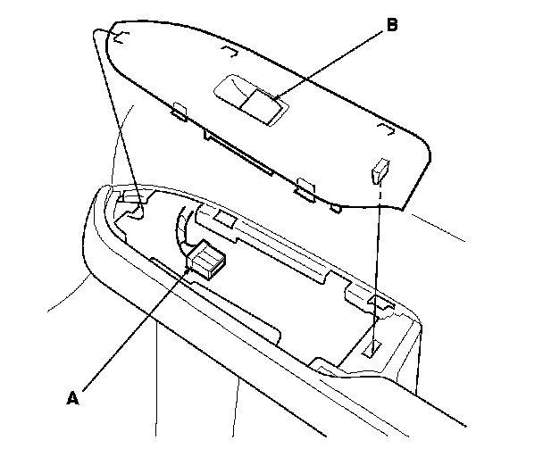 3. Disconnect the 5P connector (A) from the front passenger's power window switch (B).