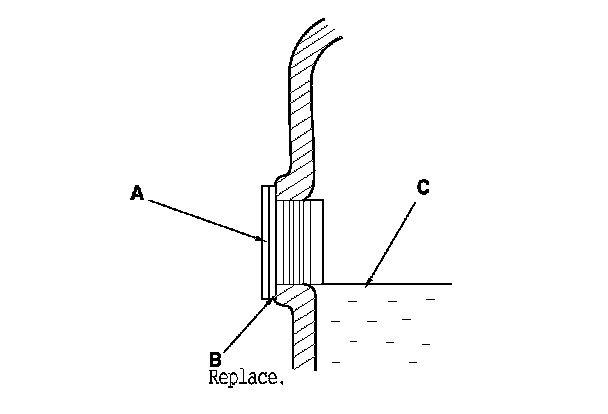 3. Remove the filler plug (A) and the sealing washer (B), then check the condition of the fluid, and make sure the fluid is at the proper level (C).