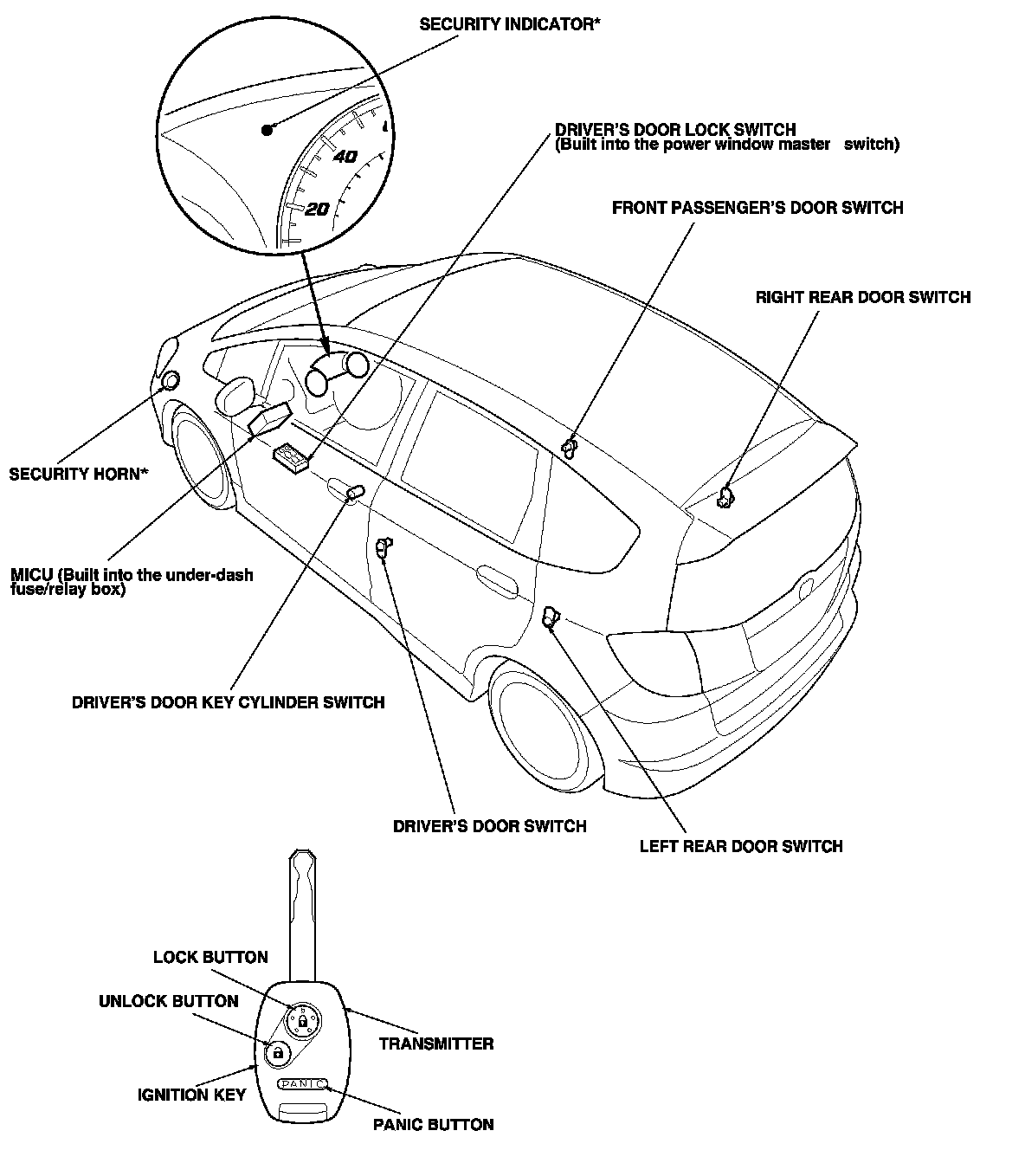 Keyless/Power Door Locks/Security System Component Location Index