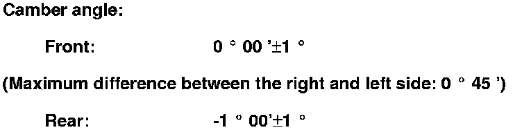 - If the measurement for the front camber is outside the specification, go to front camber adjustment.