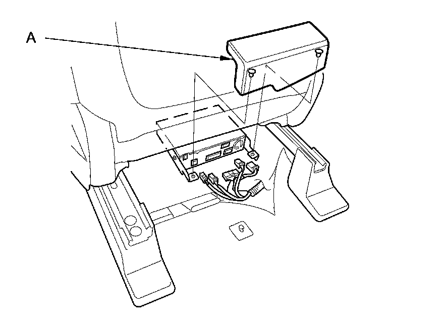 6. Move the driver's seat all the way back, and remove the two mounting nuts (A), then remove the navigation unit (B).
