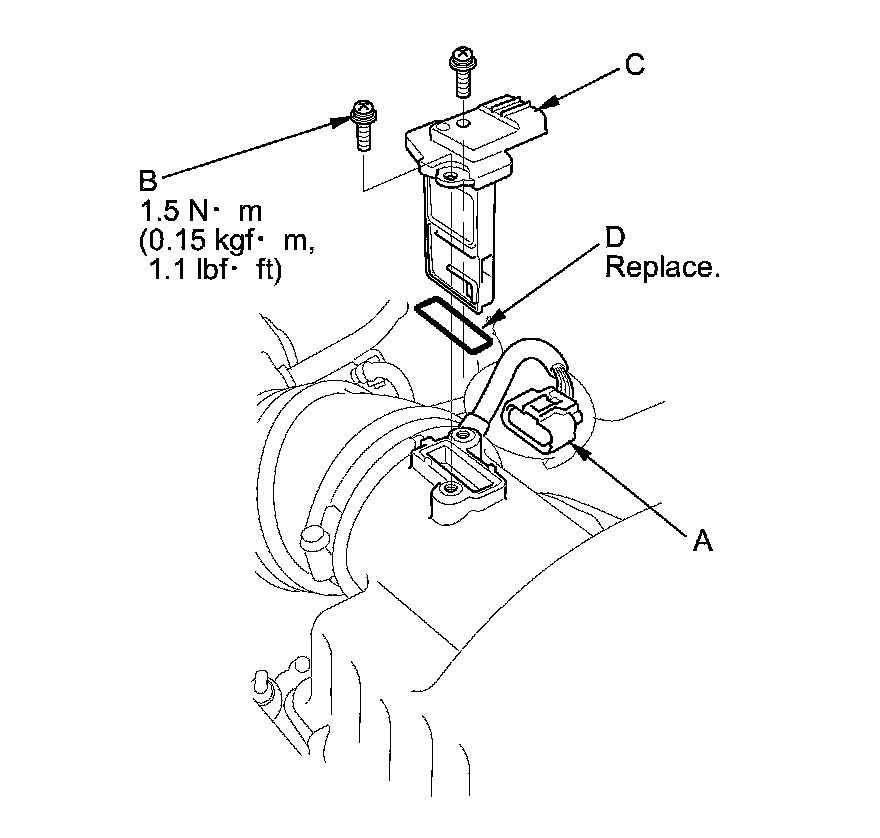 4. Install the parts in the reverse order of removal with a new O-ring (D).
