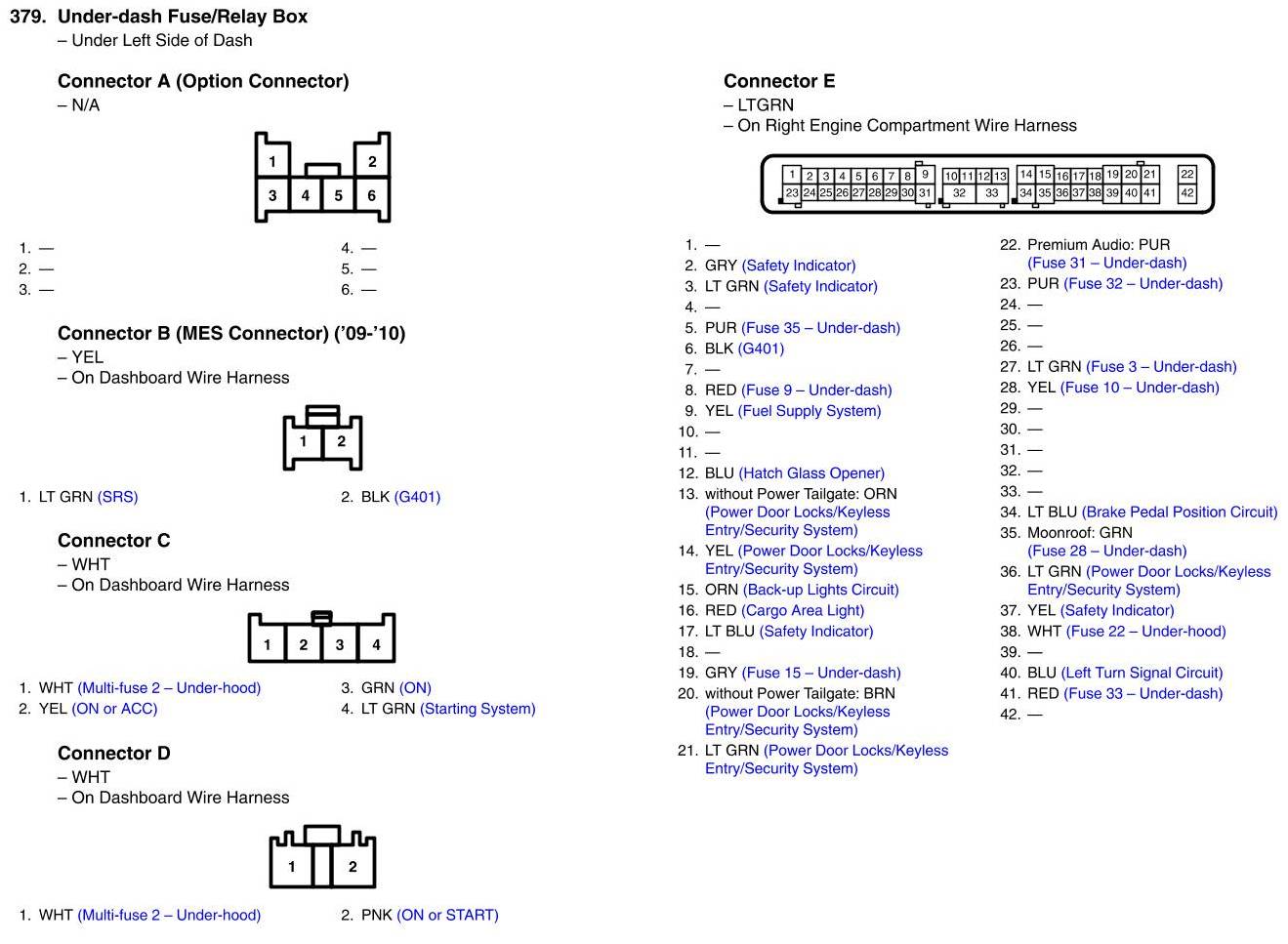 Under-dash Fuse/Relay Box Connector View