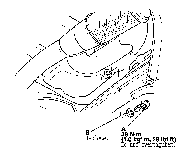 3. Reinstall the drain bolt with a new washer (B).