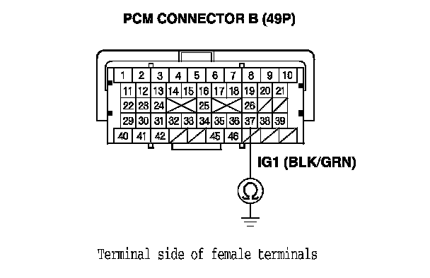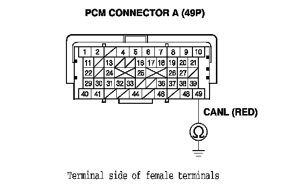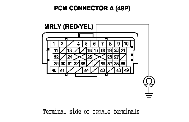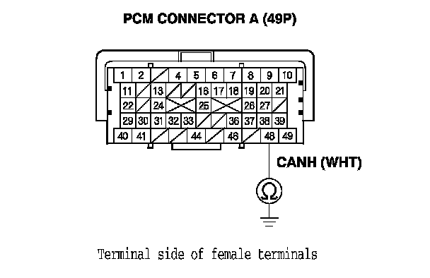 33. Check for continuity between PCM connector terminal A49 and body ground.