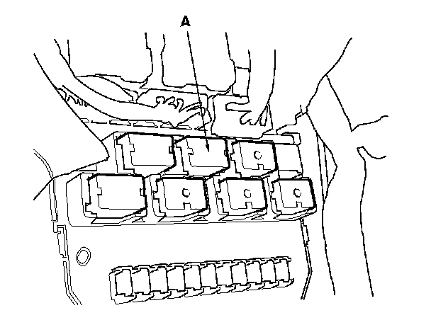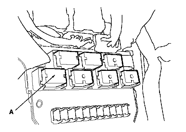39. Remove PGM-FI main relay 1 (FI MAIN) (A) from the driver's under-dash fuse/relay box.