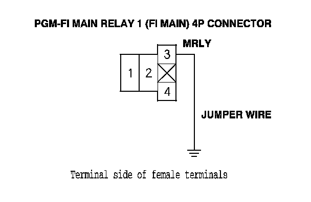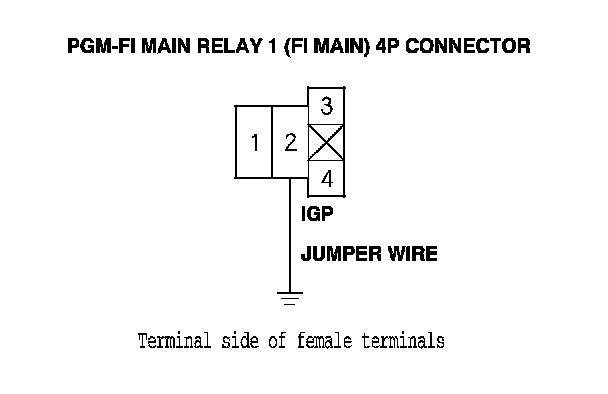 76. Connect PGM-FI main relay 1 (FI MAIN) 4P connector terminal No. 2 to body ground with a jumper wire.
