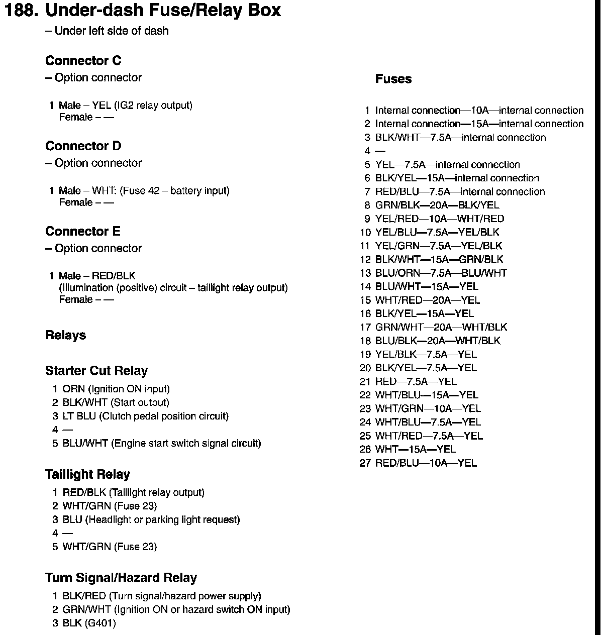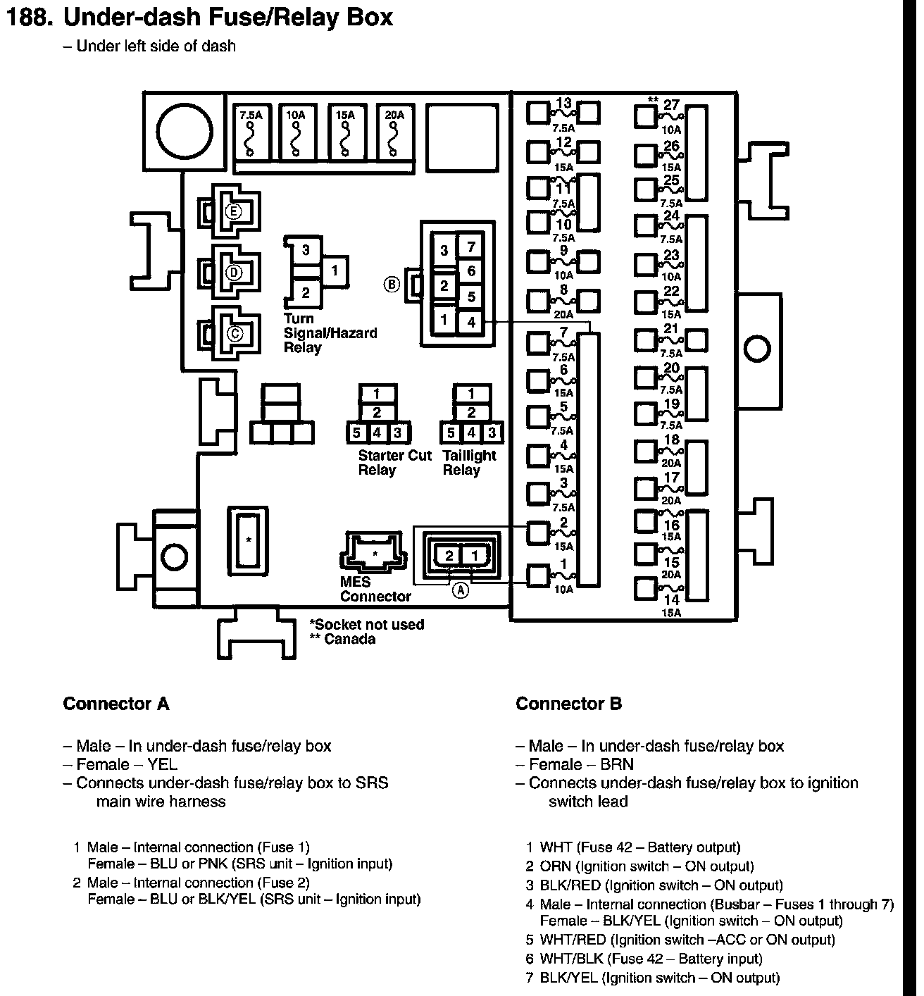 Under-dash Fuse/Relay Box Connector View