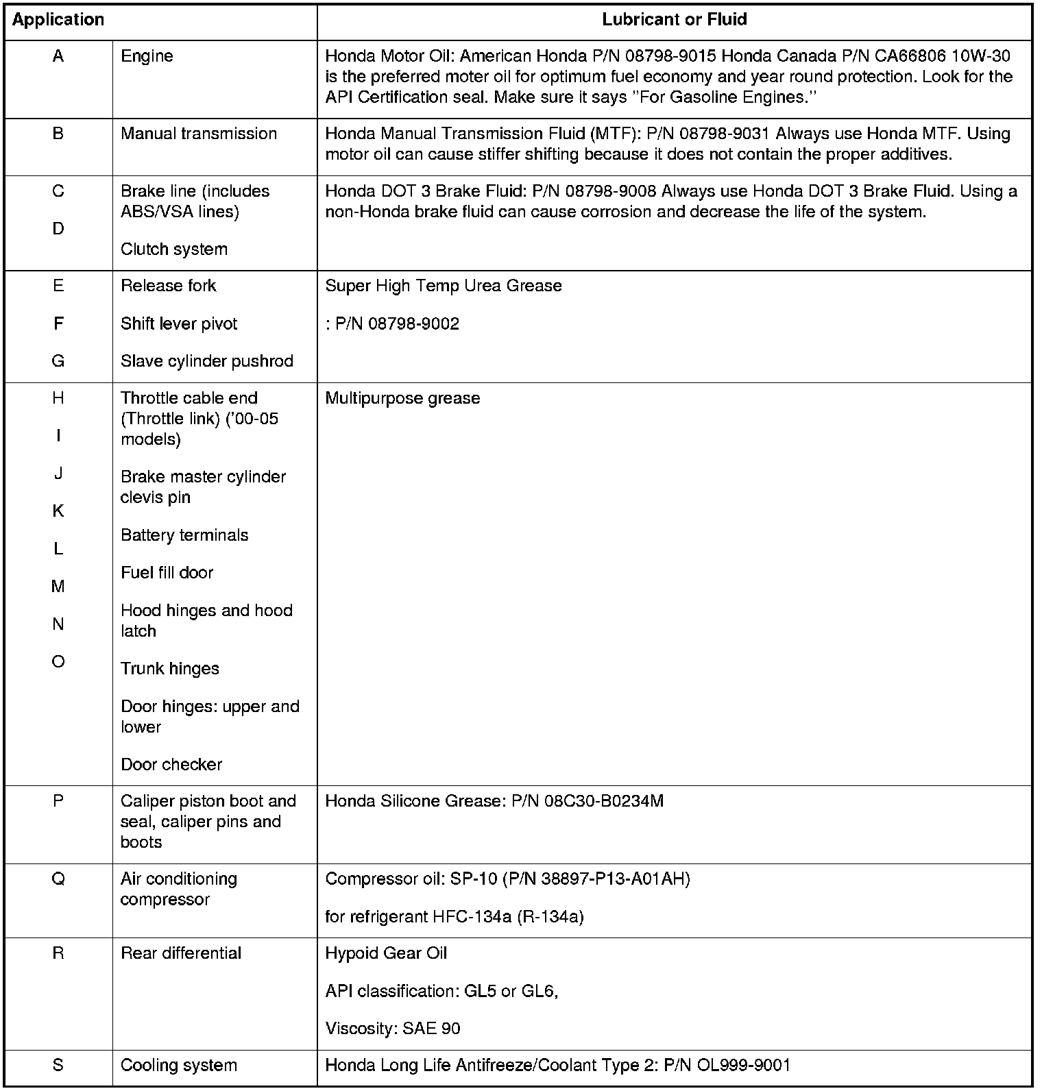 Home >> Honda >> 2009 >> S2000 L4-2.2L >> Repair and Diagnosis >> Maintenance >> Fluids >> Specifications