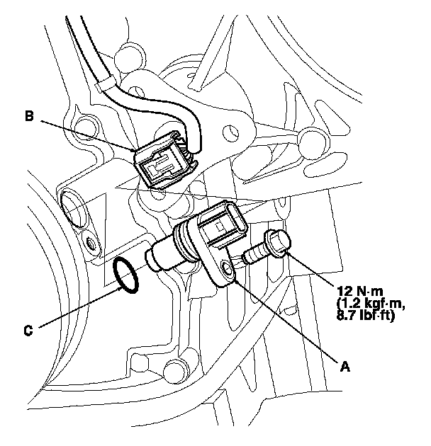 3. Install the parts in the reverse order of removal with a new O-ring (C).