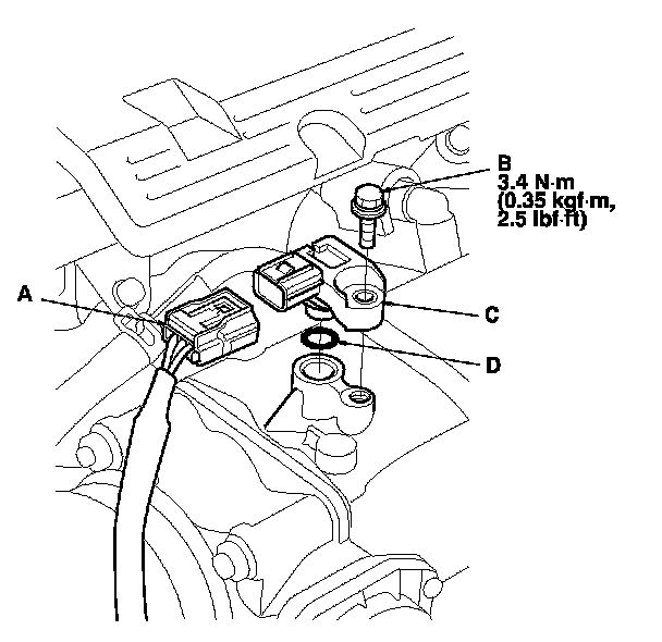 4. Install the parts in the reverse order of removal with a new O-ring (D).