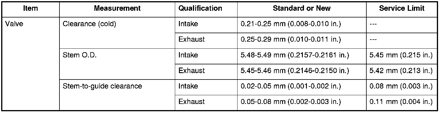Valve Specifications