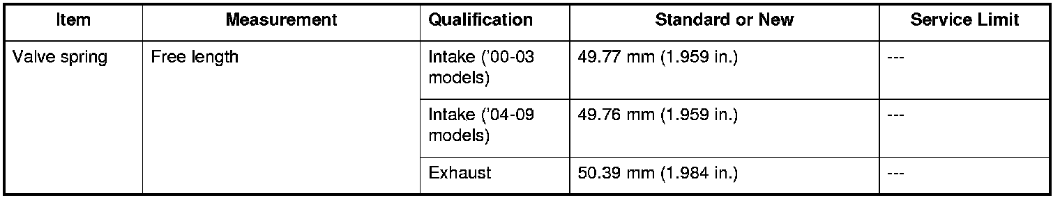 Valve Spring Specifications