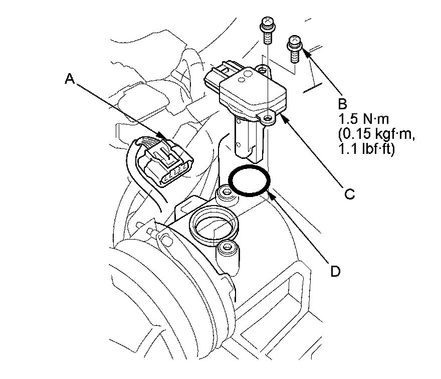 1. Disconnect the MAF sensor/IAT sensor connector (A).