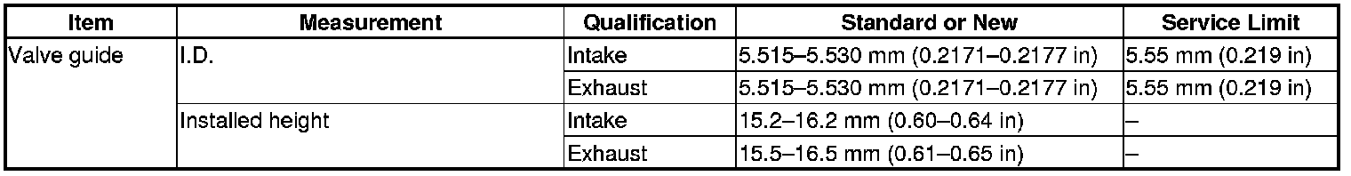 Valve Guide Specification(s)