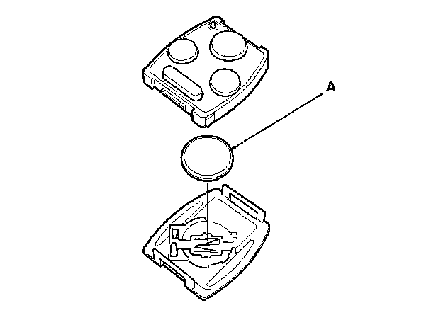 4. Replace the transmitter battery (A) with a new one (CR1616), and try to lock and unlock the doors with the transmitter by pressing the lock or unlock button five or six times.