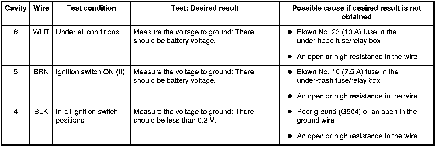 Home >> Honda >> 2010 >> Civic L4-1.8L >> Repair and Diagnosis >> Relays and Modules >> Relays and Modules - Instrument Panel >> Instrument Panel Control Module >> Testing and Inspection >> Gauge Control Module (Speedo) Input Test