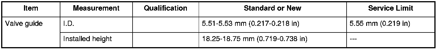 Valve Guide Specifications