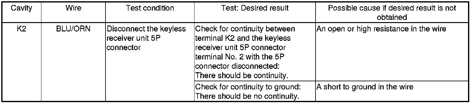Keyless/Power Door Locks (Multiplex Control Unit) Input Test