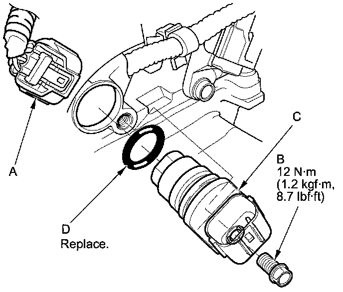 5. Install the parts in the reverse order of removal with a new O-ring (D).