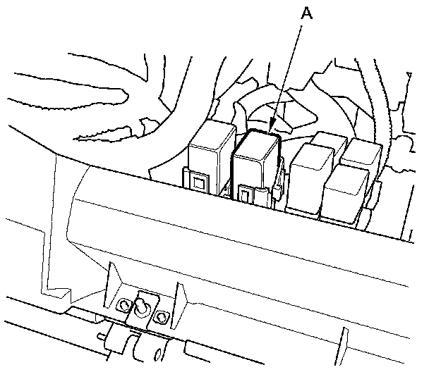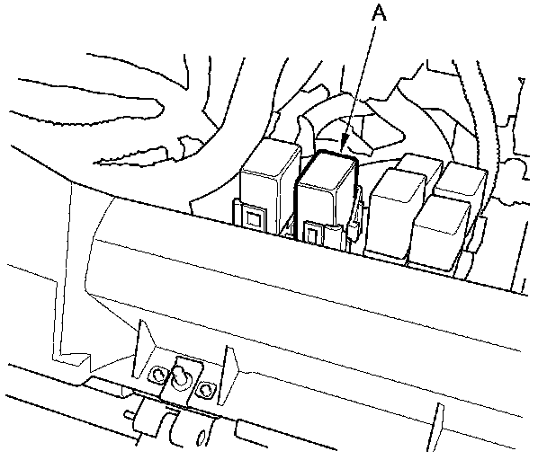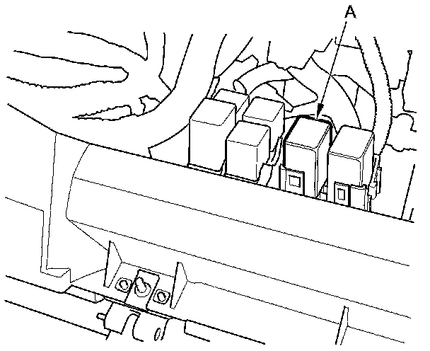 60. Remove the glove box Service and Repair, then remove PGM-FI main relay 1 (FI MAIN) (A).