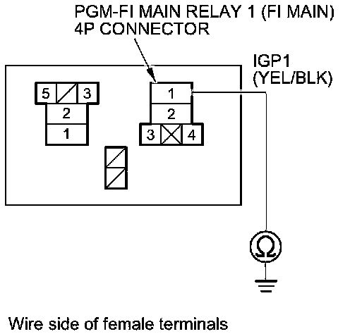 41. Check for continuity between PGM-FI main relay 1 (FI MAIN) 4P connector terminal No. 1 and body ground.