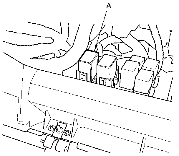 44. Remove the glove box Service and Repair, then remove PGM-FI main relay 2 (FUEL PUMP) (A).