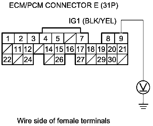 83. Measure the voltage between body ground and ECM/PCM connector terminal E5.