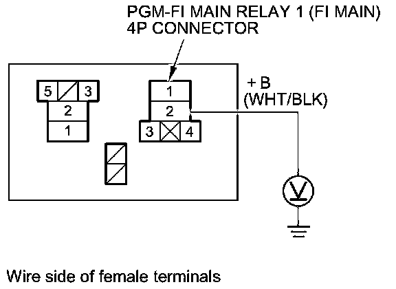 68. Measure the voltage between PGM-FI main relay 1 (FI MAIN) 4P connector terminal No. 2 and body ground.