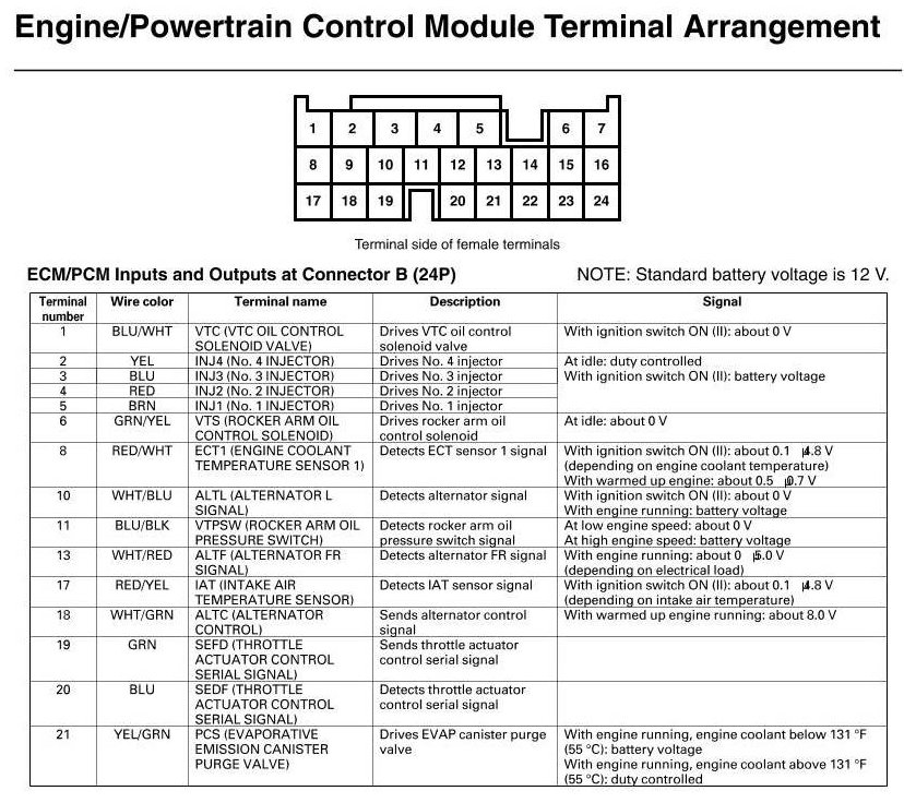 ECM/PCM Inputs And Outputs At Connector B