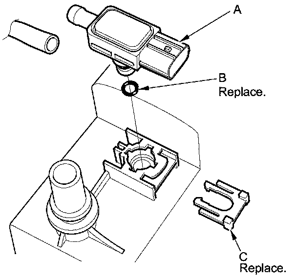 Install the parts in the reverse order of removal with a new O-ring (B) and a new retainer (C).