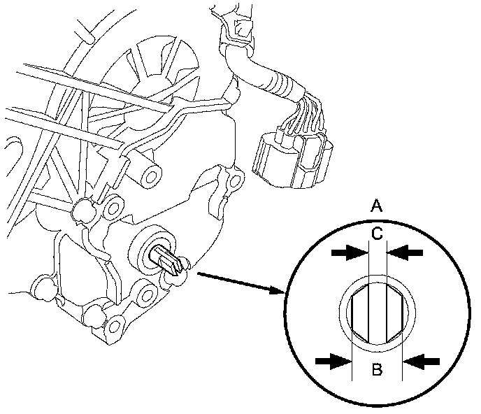 8. Remove the transmission range switch, and check the end of the selector control shaft (A).