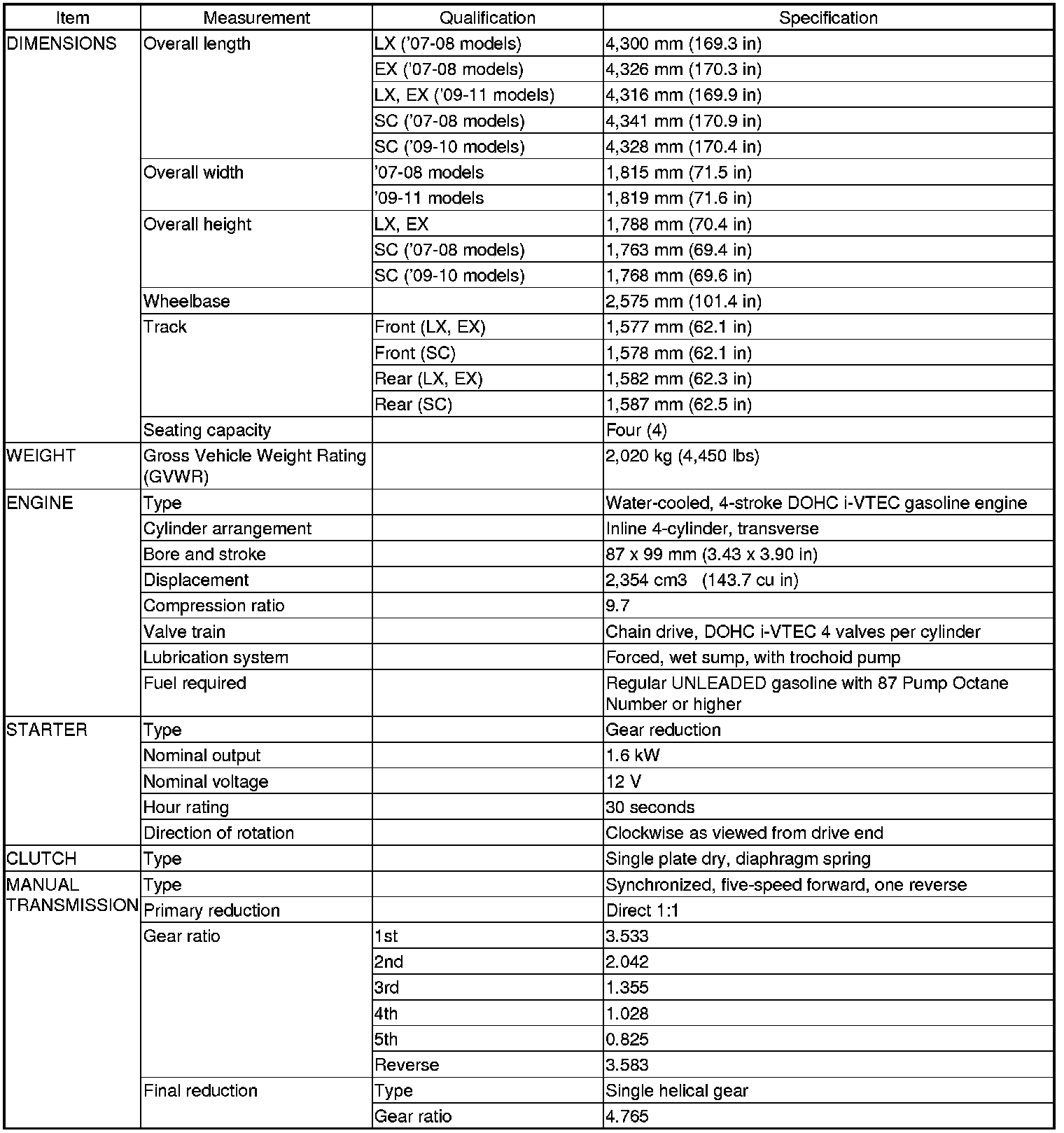 Element 2WD L4-2.4L