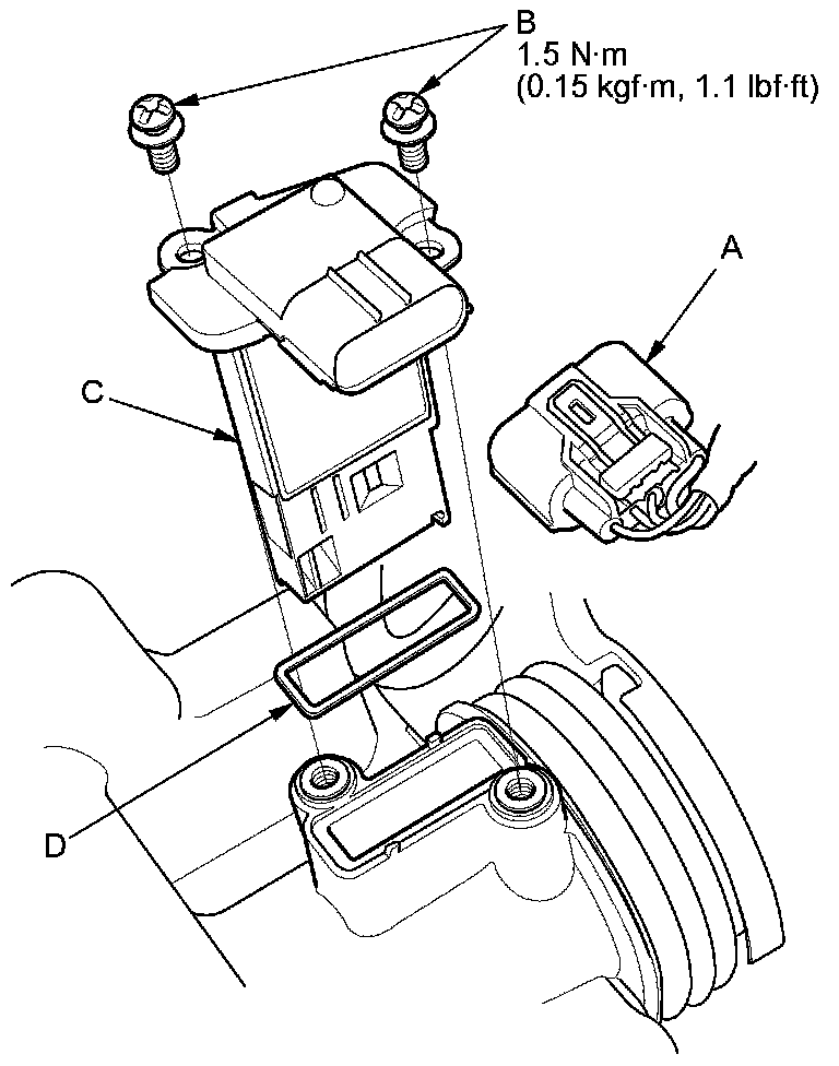 4. Install the parts in the reverse order of removal with a new gasket (D).
