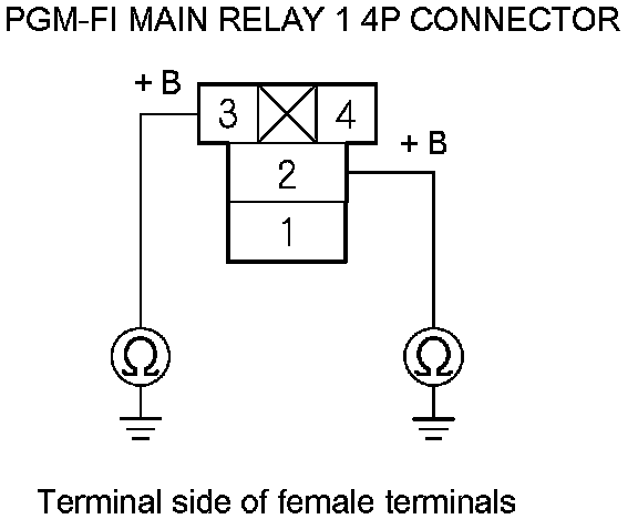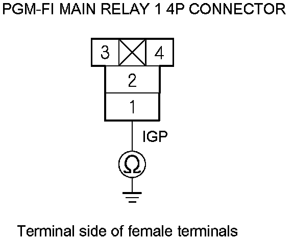 45. Check for continuity between PGM-FI main relay 1 4P connector terminal No. 1 and body ground.
