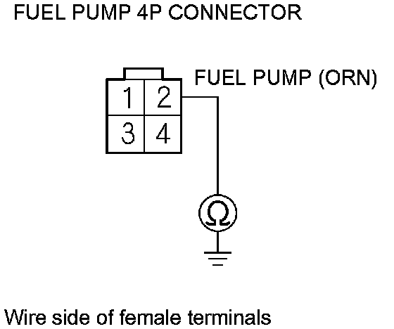55. Check for continuity between fuel pump 4P connector terminal No. 2 and body ground.