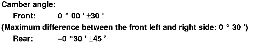 - If the measurement for the front camber is outside the specification, go to the front camber adjustment.