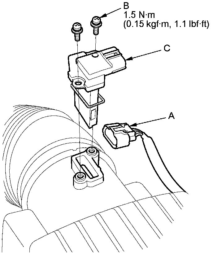 1. Disconnect the MAF sensor/IAT sensor 5P connector (A).